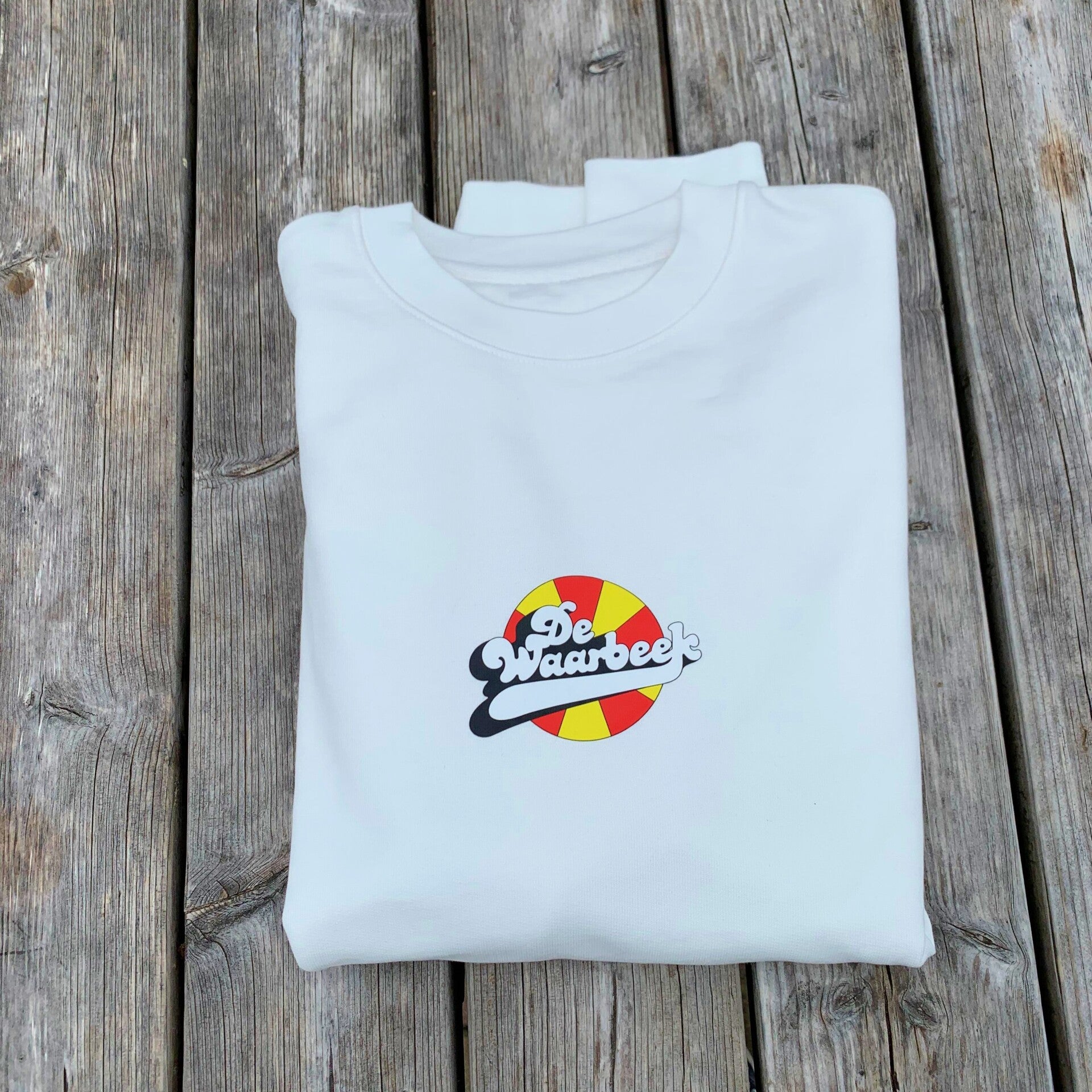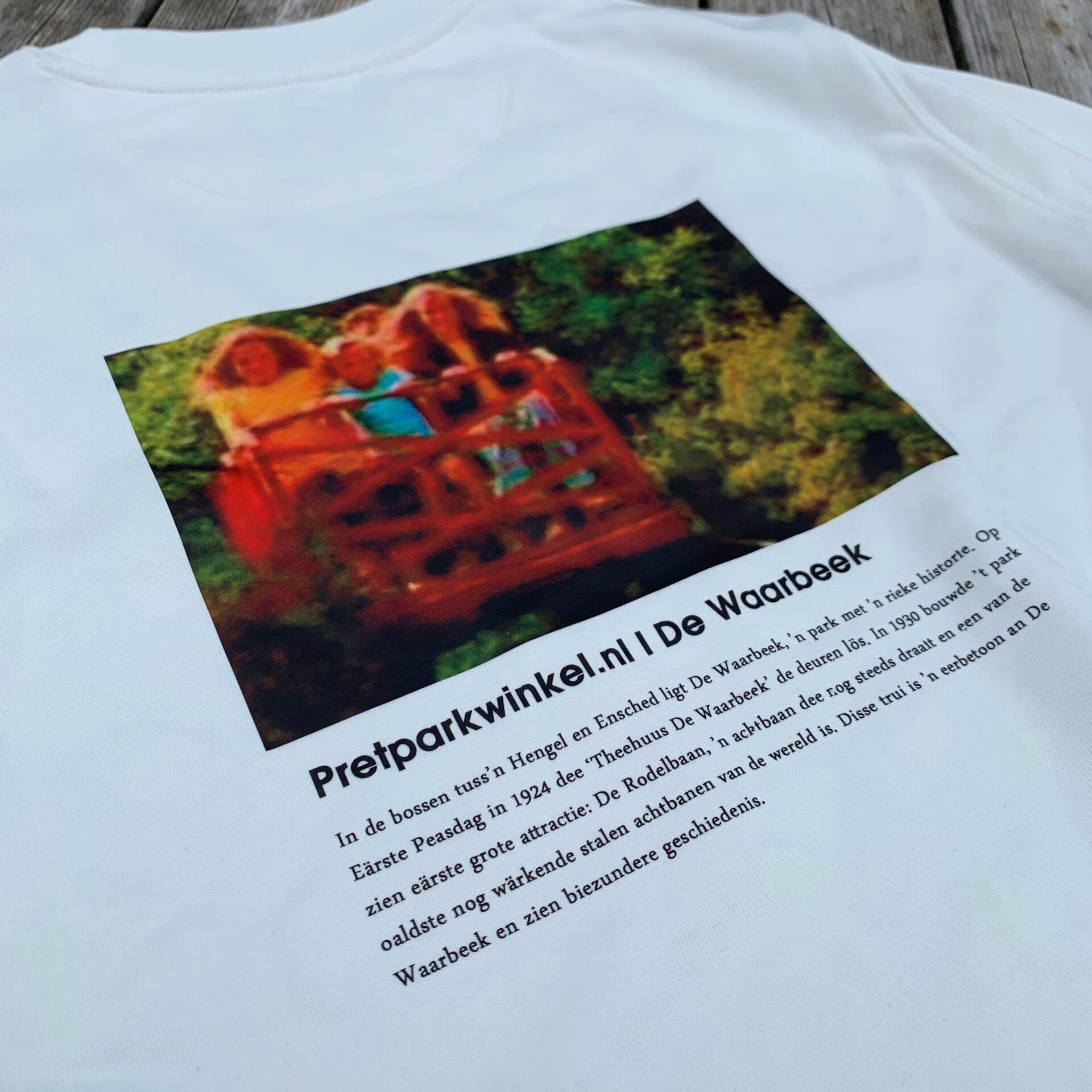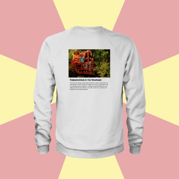 De Retro Waarbeek Sweater is exclusief verkrijgbaar op Pretparkwinkel.nl en in de souvenirwinkel van Attractiepark De Waarbeek.