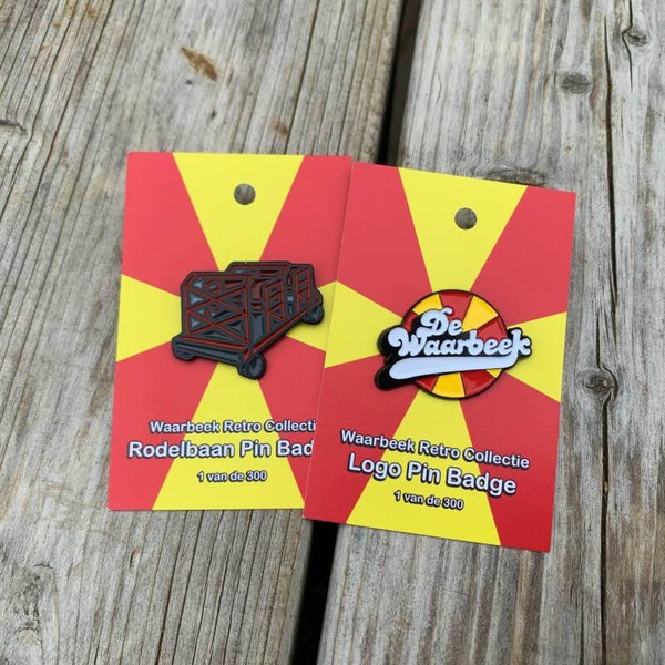 De Retro Waarbeek Pin is een gelimiteerd item van 300 stuks. De pin is exclusief verkrijgbaar op Pretparkwinkel.nl en in de souvenirwinkel van Attractiepark De Waarbeek.